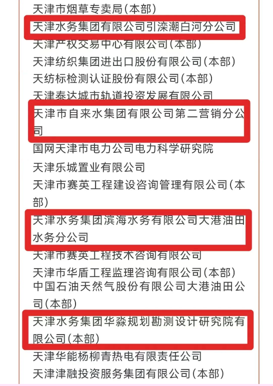 中共天津市委宣传思想文化工作领导小组关于认定命名天津市精神文明建设先进的决定已发出,天津水务集团有限公司引滦潮白河分公司、天津市自来水集团有限公司第二营销分公司、天津水务集团滨海水务有限公司大港油田水务分公司、天津水务集团华淼规划勘测设计研究院有限公司上榜2021-2024年度天津市文明单位名单。