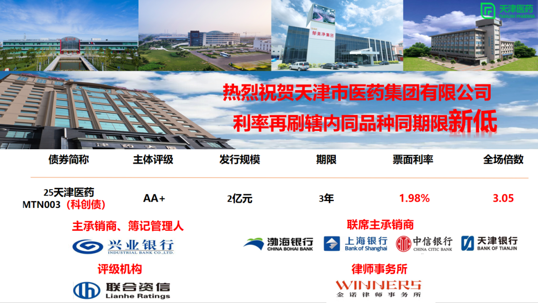 企联副会长单位动态 | “1%”时代,天津医药集团第二期科技创新债券成功发行
